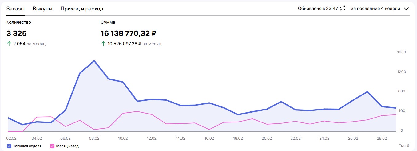 По итогу, сделав верный выбор, получили такие результаты на скриншоте выше. Мы закупили внешней рекламы у блогеров в различных социальных сетях на сумму около 400 000+, которые принесли чуть более 7 млн выручки в первые 10 дней и на момент написания статьи общие продажи достигли немыслимых 16 млн рублей! Мы конечно ожидали рост, но прогнозировали его на уровне 11-13 млн. Нет сомнений, что реклама более чем окупилась.