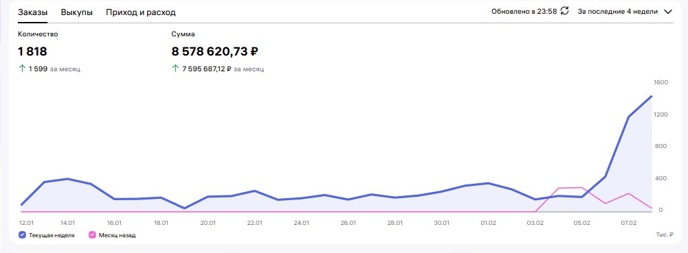 Анализ данных первых двух недель дал чёткий и ценный инсайт: 80% эффективного трафика и продаж обеспечивали всего 4 ключевых блогера, чья аудитория идеально совпала с портретом целевого клиента — ценителем качества и истории бренда. Мы мгновенно перестроили стратегию, перераспределив почти весь рекламный бюджет в пользу этих четырёх лидеров мнений. Результат не заставил себя ждать: если в период с 6 по 18 января средние дневные продажи колебались на уровне 300-400 тыс. рублей, то после фокусировки на эффективных каналах средний дневной доход устойчиво достигал 1.2 млн рублей. Это наглядный пример силы data-driven подхода в influence-маркетинге.