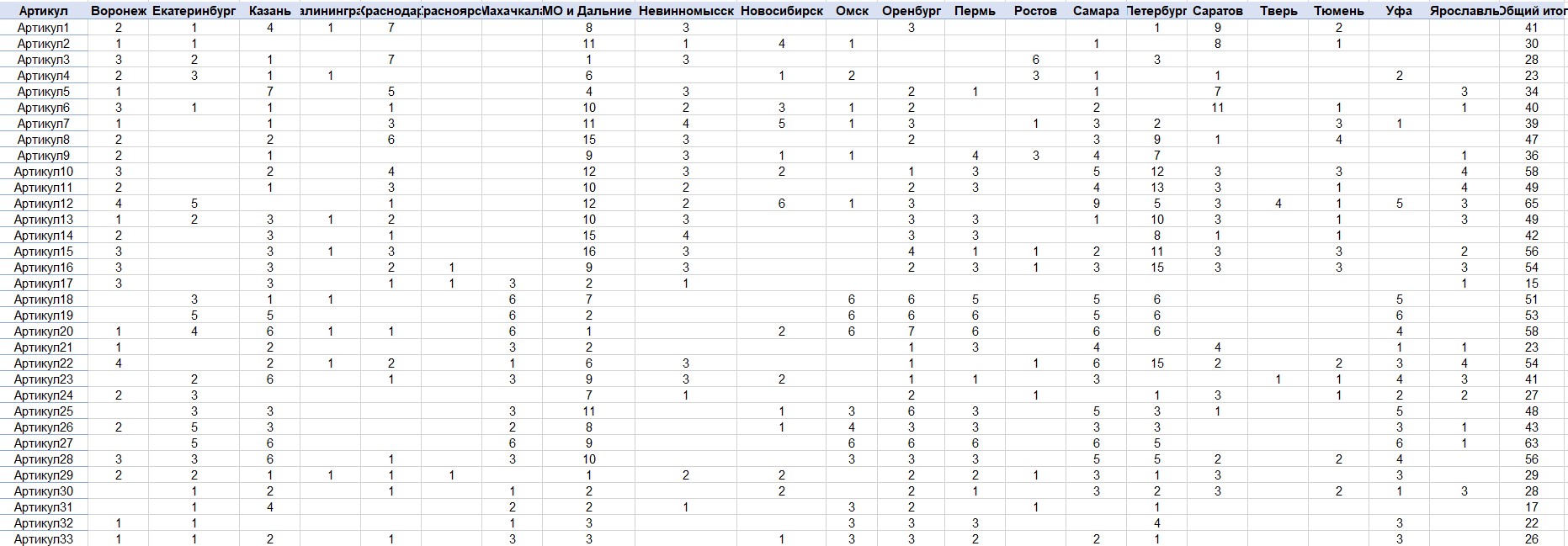 Главная цель — повысить удобство планирования поставок. Вместо ручного копирования и фильтрации данных из громоздкого отчёта вы получаете готовую таблицу, где сразу видна общая картина по кластерам. Да, конечно, можно задаться вопросом: "а зачем?".